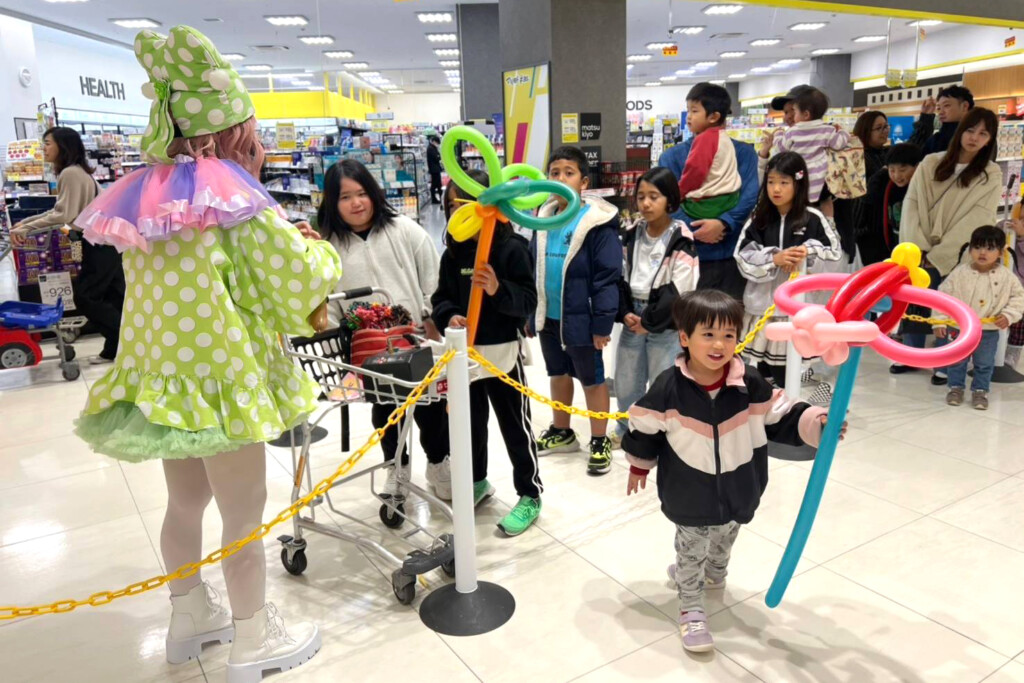 パフォーマンスは午前11時を皮切りに計4回実施。ファンキーさんは、並んでいる子どもたちのリクエストを丁寧に聞きながら、色とりどりの風船を使って花や飛行機、動物などを即興で制作した。バルーンが完成するたびに、子どもたちからは歓声が上がり、会場は温かな雰囲気に包まれた。