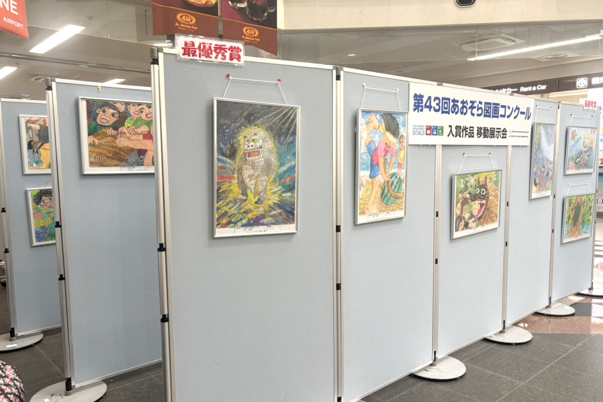 児童の感性、24日まで宮古空港に彩る あおぞら図画コン移動展 JTA・RAC