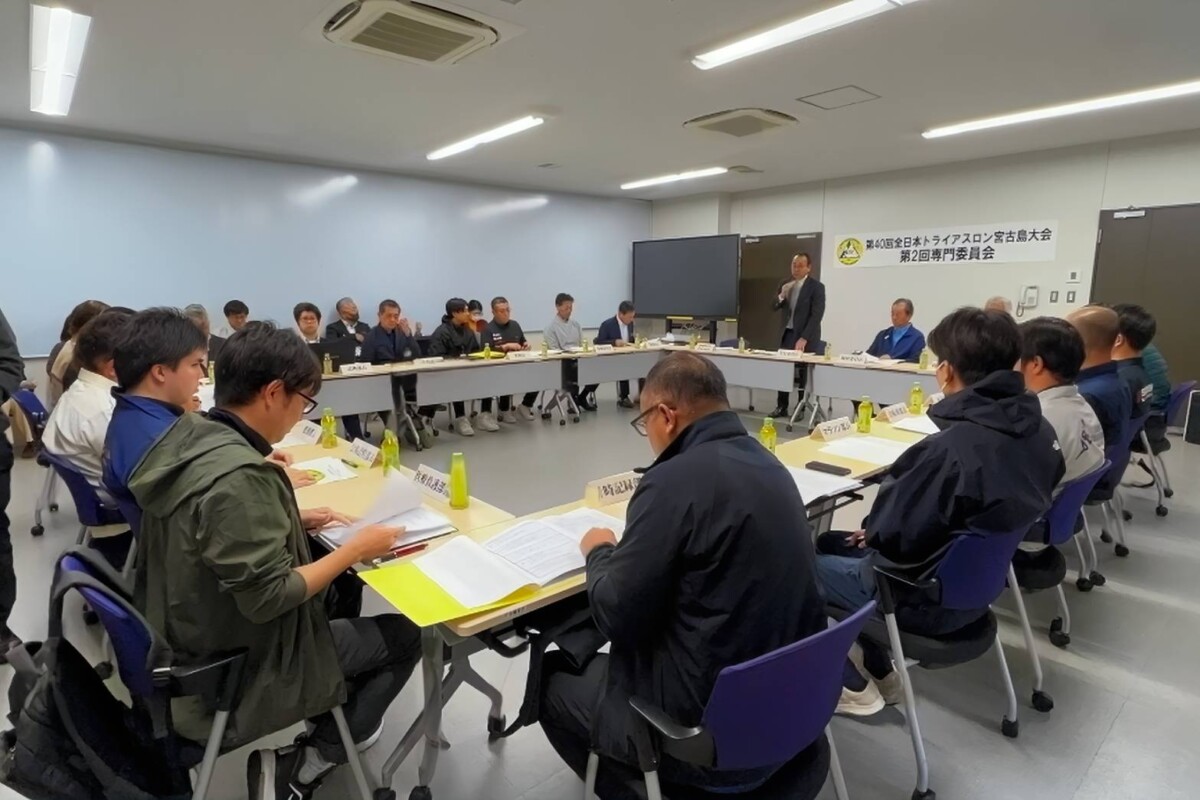 宮古島トライアスロン実行委員会は19日、市役所で第40回全日本トライアスロン宮古島大会「第2回専門委員会」を開いた。4月19日の開催まで59日に迫る中、実行委員長の砂川朗副市長ら関係者が集まり、各専門部の進ちょく状況や課題を共有。選手登録状況が1469人と報告されたほか、ボランティア態勢や安全対策など12項目の確認事項を申し合わせ、大会の成功に向けて万全を期す方針を確認。節目となる記念大会の安心・安全な運営を目指す。