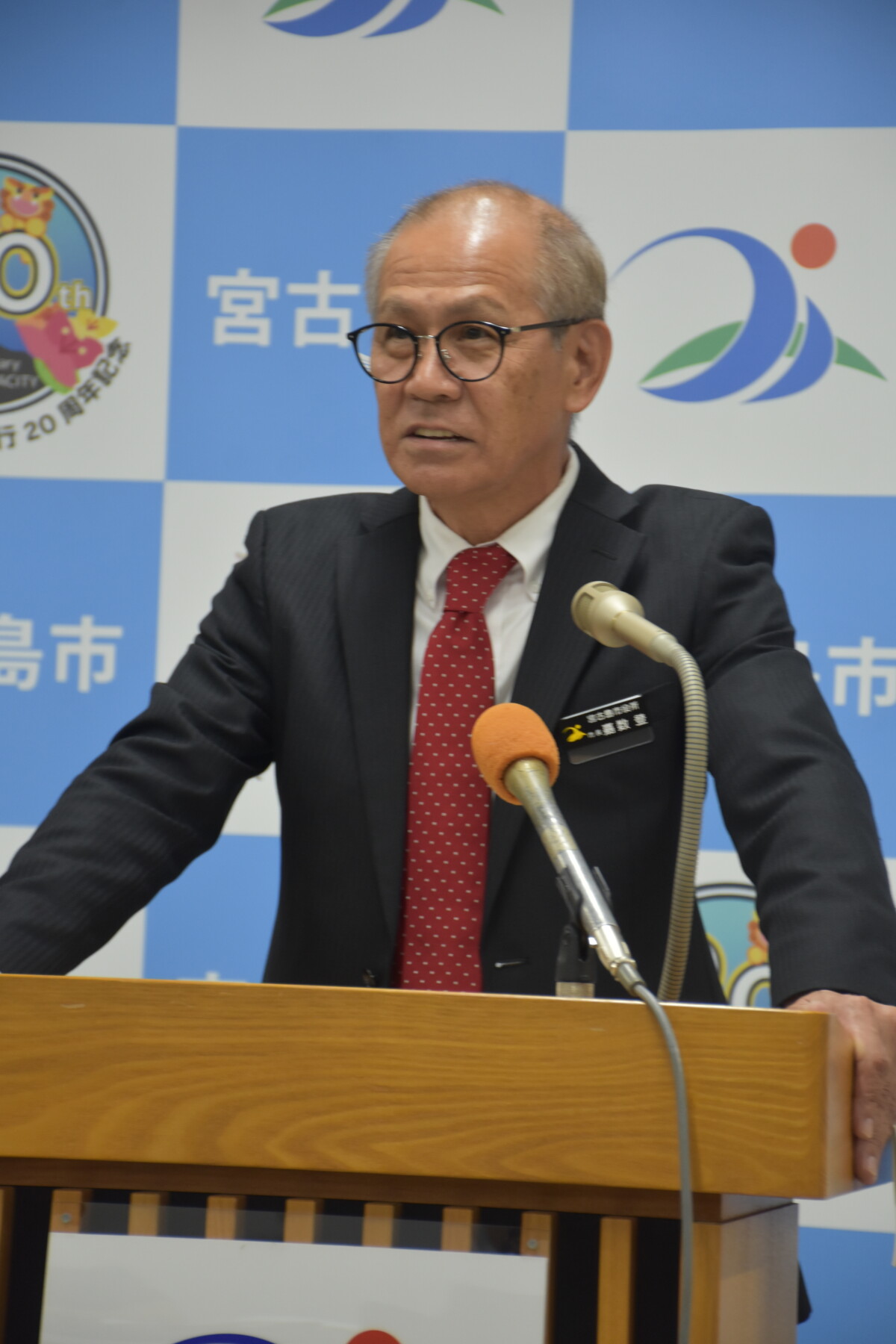 嘉数登市長は25日、市役所で記者会見し、2026年度当初予算案を発表した。一般会計は496億6700万円、前年度比77億7000万円(18・4%)増。総合体育館の整備事業、伊良部小中学校プール整備事業、物価高騰対策(地方創生臨時交付金)などにより宮古島市として最大の予算規模となる。先進技術活用型住宅整備事業など新規政策や「ふるさと創生課」「産業政策課」「水道浄水課」の新設も示した。