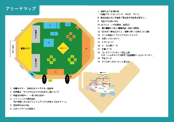 アリーナ内には多彩な体験・展示ブースが集結。宮古特別支援学校による食器や野菜の販売、最新技術に触れるロボットゲーム体験、3Dプリンターを活用した未来の住宅整備実証の紹介などが予定されている。また、宮古島産サトウキビから生まれたラム酒の紹介や、海洋ごみ問題を考えるワークショップなど、島の産業や環境をテーマにした出展も目を引く。