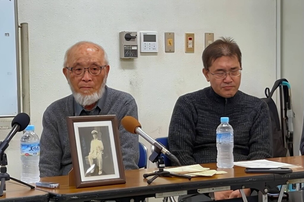 敷設艇「燕」は1945年3月1日、米軍戦闘機の襲撃を受けて沈没。吉田艦長以下70数名が戦死したとされる。戦後81年が経過したこの日、進さんは午後5時過ぎ、撃沈された時刻に合わせて現場海域を望む高台を子ども3人と共に訪れ、静かに手を合わせた。
