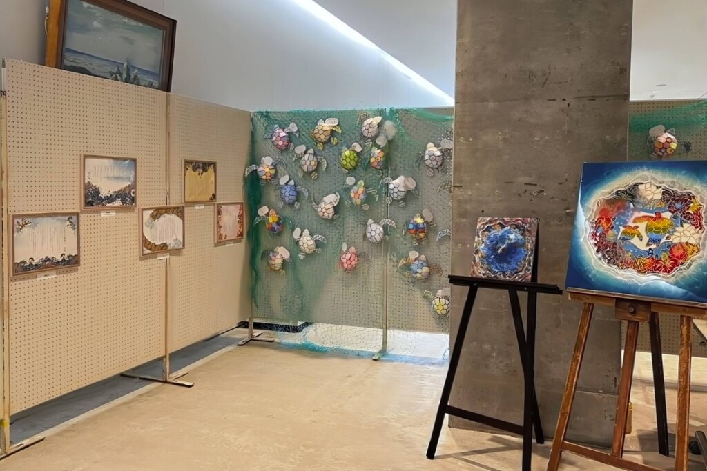 また、ホール前には受賞作やアート作品も展示され、来場者は子どもたちの紡いだ言葉に熱心に見入っていた。