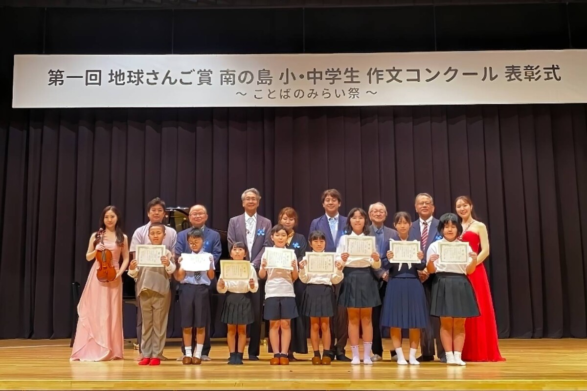 「水」「いのち」「地球」をテーマに、子どもたちが自然へのまなざしや郷愁を綴(つづ)る「第1回地球さんご賞南の島小・中学生作文コンクール」(地球さんご賞南の島実行委員会主催)の授賞式が1日、市未来創造センターで開かれた。宮古島から応募された約40作品の中から、最優秀賞に選ばれた與那覇晏理さん(久松小4年)ら入賞者が表彰され、自身の作品を瑞々しい感性で朗読。與那覇さんの「カバマダラとの夏」は、九州ブロックおよび全国本部でも最優秀賞に選出される快挙となった。