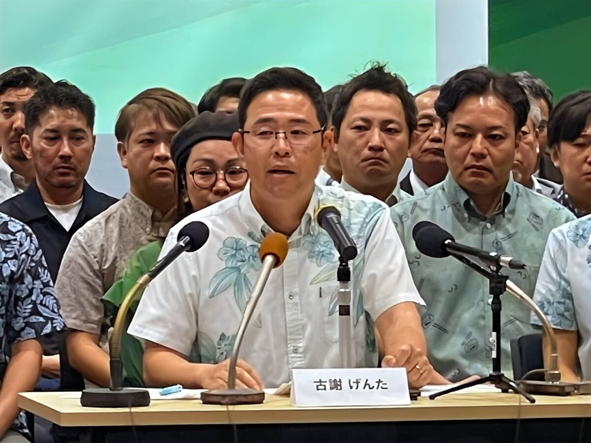 沖縄県政を巡り、前那覇市副市長の古謝玄太氏(42)が23日、中小企業振興会館で記者会見を開き、秋の沖縄県知事選挙へ出馬する意向を正式に表明した。会見では、沖縄の将来像として「沖縄を守る」「沖縄を開く」「沖縄をつなぐ」の3つの柱を掲げ、物価高や離島振興などの課題に取り組む姿勢を示した。今後の選挙戦に向けた基本的な考え方と方向性を明らかにした。