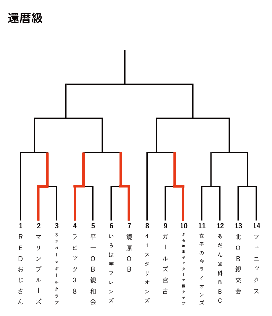鏡原OBは二回に4点を先制。その後、四回表にいろは亭フレンズが逆転するも、その裏に3点を奪い返し、劇的なサヨナラ勝ちを収めた。