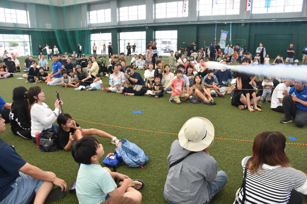 2026年海族まつり「第48回サンゴの楽園未来まで集まれ、遊ぼう宮古島の海びらき」(宮古島観光協会主催)の関連イベントが5日、伊良部屋外運動施設多目的屋内運動場で行われた。この日、下地与那覇の前浜ビーチで開催の「宮古島の海びらき」は悪天候が予想されるとして中止になり、一部プログラムを変更して関連イベントを実施。多くの子どもらが宝さがし、島ぞうりとばしなどを楽しんだ。