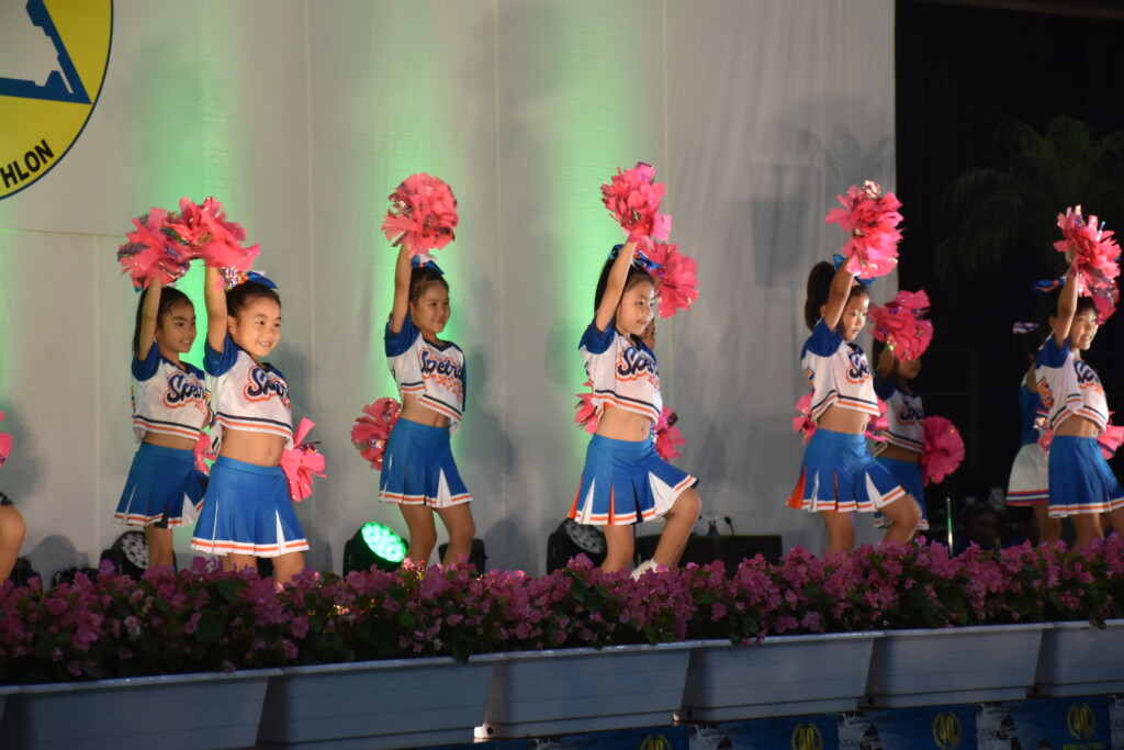 午後7時から始まった開会式のオープニングアトラクションは、チアダンススクール「スペイラ」のメンバーが華やかなダンスで盛り上げた。