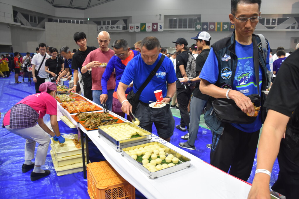 ワイドーパーティーでは、協賛社代表で日本トランスオーシャン航空の堀尾裕子社長が音頭を取り「大会の成功と選手のみなさんの激走を祈念している」と乾杯。宮古高校軽音楽部の演奏や琉球國まつり太鼓の力強い演舞も披露された。
