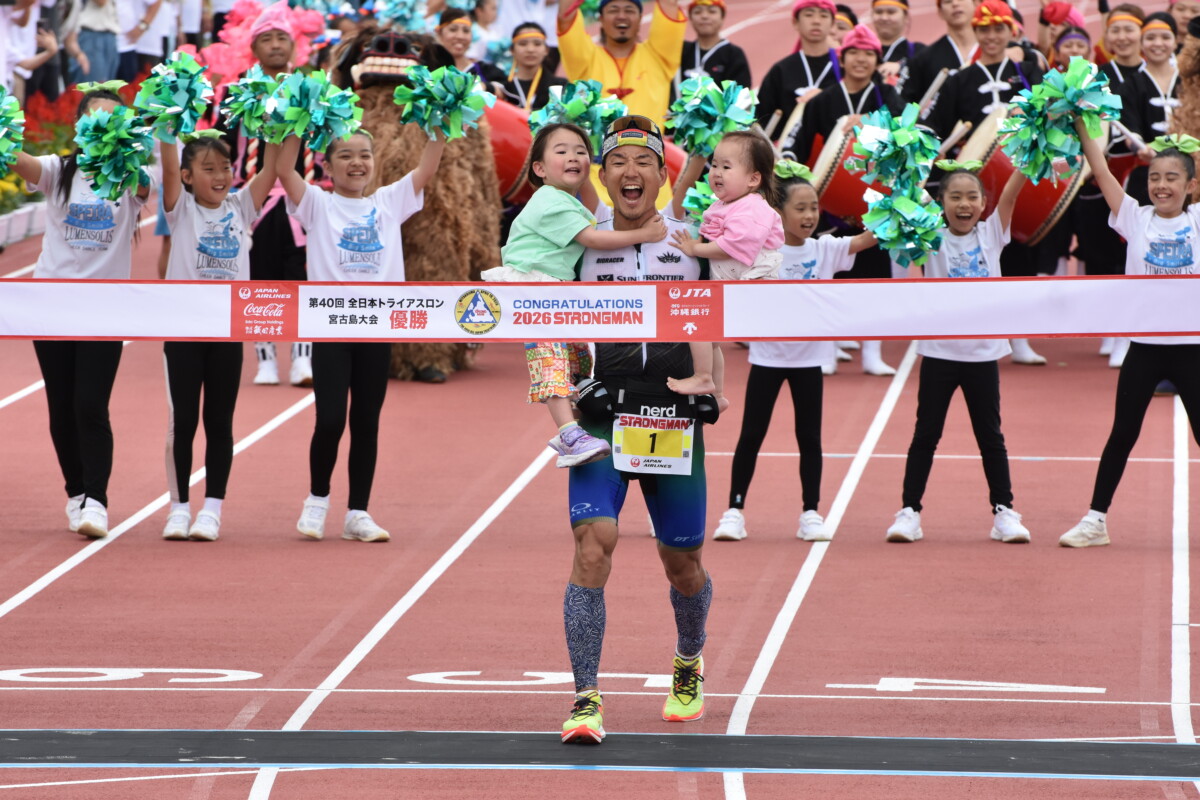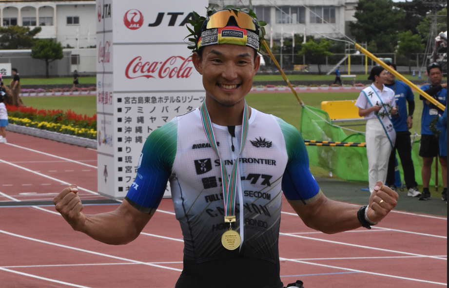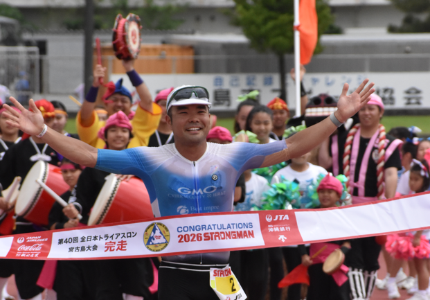 「第40回全日本トライアスロン宮古島大会」が19日、宮古島を舞台に開催された。総勢1369人の鉄人たちが午前7時に下地与那覇の前浜ビーチを一斉にスタートし、3競技計168.195キロの過酷なレースに挑んだ。今大会は気温23.0度、湿度92%の蒸し暑いコンディションの中で過酷なレースを終えたばかりの上位入賞者らは、互いの健闘を称え合い、それぞれの想いを語った。
