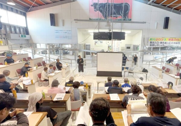 沖縄県家畜改良協会は17日、JA宮古家畜セリ市場で「繁殖雌牛改良促進事業に係る繁殖雌牛体型調査講習会」を開催した。