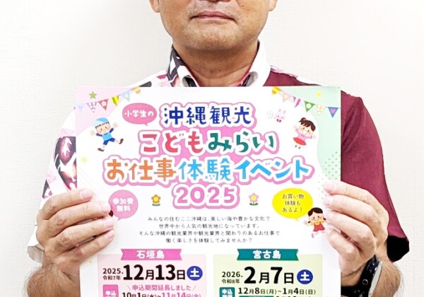 損害保険ジャパン沖縄支店の中島健史支社長がこのほど宮古新報社を訪れ、来年2月7日にJTAドーム宮古島を会場に開催される小学生向け職業体験イベント「沖縄観光こどもみらいお仕事体験イベント2025」について説明し、地域企業や関係団体に参加協力を呼びかけた。