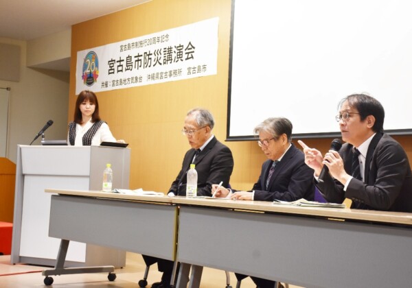 宮古島市制施行20周年記念「防災講演会」(主催・市、県宮古事務所、宮古島地方気象台)が6日、市役所で行われた。