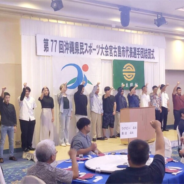 第77回県民スポーツ大会に出場する宮古島市代表選手団の結団式が7日夕、平良下里のホテルで開かれた。