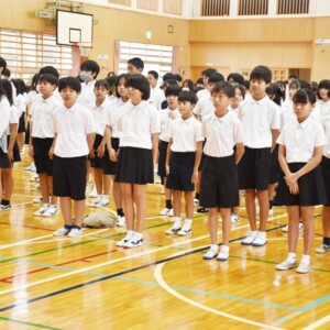 13日の市立上野中学校(渡久山英徳校長)の卒業式で、30人の74期卒業生が作詞作曲し、音楽教諭の宮国貴子さんが補作・編曲した「思...