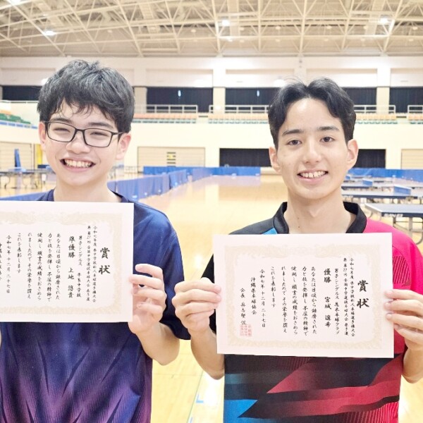 12月26と27の両日、豊見城市民体育館で行われた2025年度県中学校新人卓球選手権大会兼第27回全国中学選抜卓球大会県予選に出場した平良中学校男子卓球部の結果は次の通り。