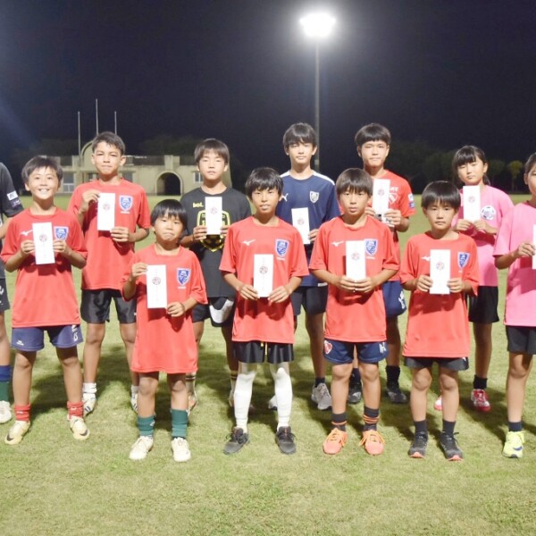 宮古サッカー協会(饒平名正会長)は1日、前福多目的運動場で県トレセンに選出された市内の小中学生13人に激励金を贈呈した。