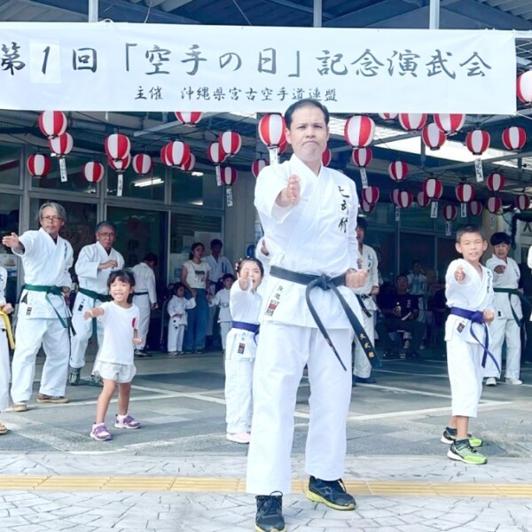 沖縄県宮古空手道連盟はこのほど、「宮古島空手の日先行演武会」を市公設市場で開催した。