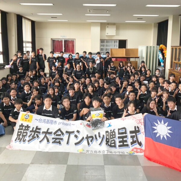 漢口国民中学校(台湾・台中市)と姉妹校交流のある下地中学校が毎年11月に行う強歩大会用のTシャツが姉妹都市である基隆市から贈られた。