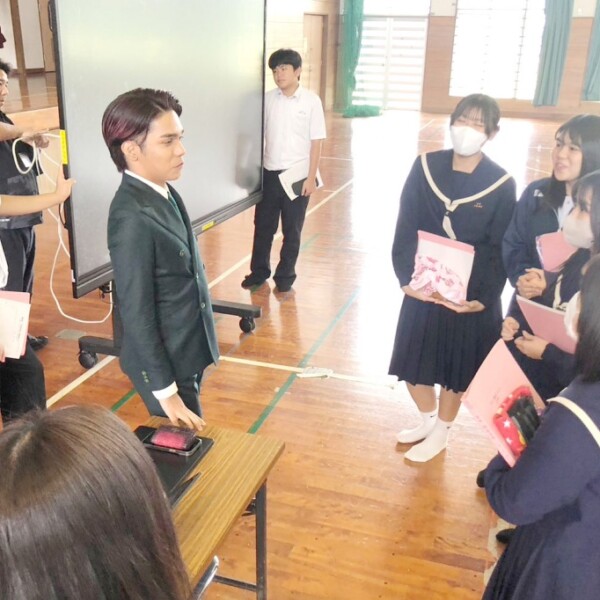 北中学校は20日、起業家・トータルライフプロデューサーとして活動する坂口シオン氏(ZNLucasCEO)を招き、キャリア教育講演会を開いた。
