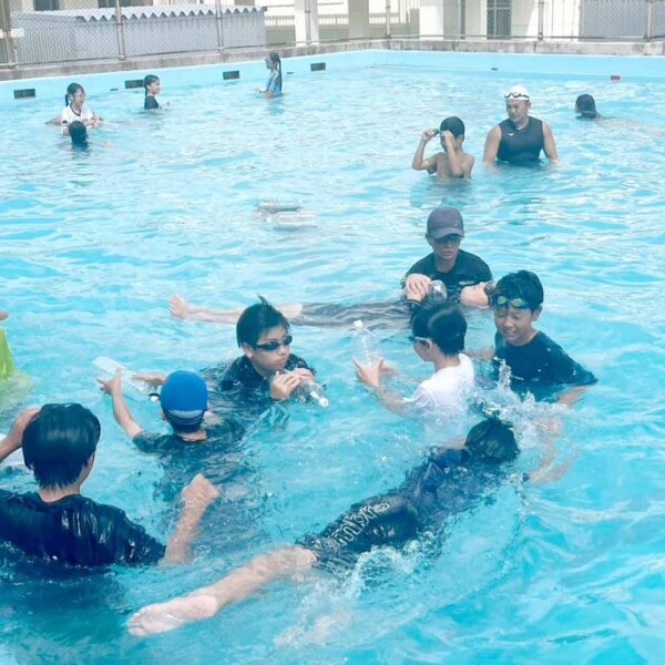 事故防止へ着衣泳学習 鏡原小 命を守る実技「ういてまて」