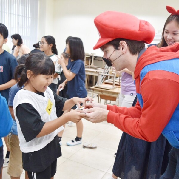 城辺小学校で22日、外国語指導助手(ALT)5人が来校し、福嶺小と合同のALTDAY特別授業としてハロウィンパーティーが開かれた。