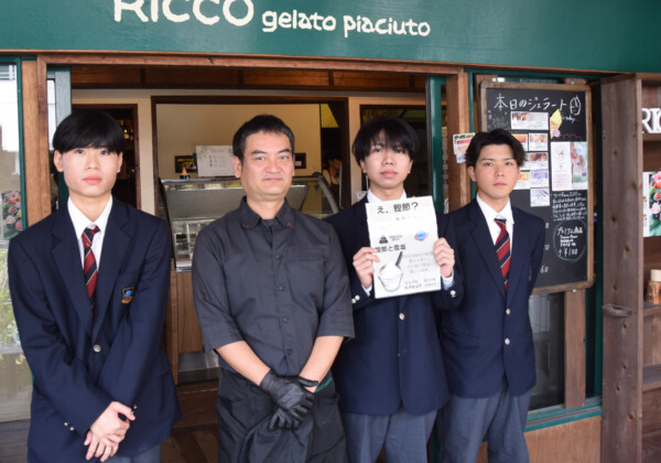 宮古総合実業高校商業科3年生の生徒たちが地元の人気店「リッコジェラート」と連携して考案した新商品「かつお節と雪塩」のジェラート...