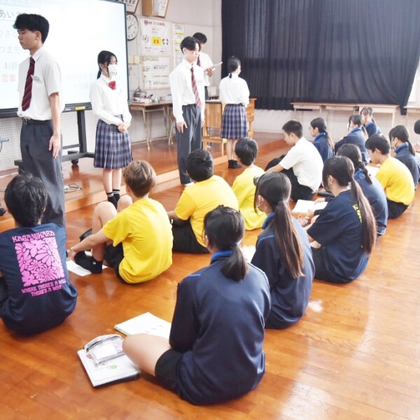 平良中学校は16日、同校1年生の総合的な学習の時間を利用し、市総合博物館学芸員の湯屋秀捷さんと、maaruinc代表の原芹さんを講師に招き、宮古の自然環境と生物についての講話が行われた。