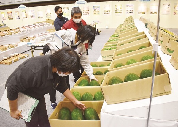【那覇支局】きょう21日に開幕する「おきなわ花と食のフェスティバル2023」で実施する野菜・花き・果樹の園芸品目の品評会とフラワーデザインコンテストの審査会が20日、那覇市の県立武道館で行われた。