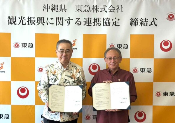 【那覇支局】沖縄県は19日、県庁で、東急株式会社と観光振興を中心とした連携協定を締結した。観光を基幹産業として持続的に発展させるため、民間企業のノウハウを取り入れ、観光の質の向上や地域経済への波及、離島を含む観光振興を図る。