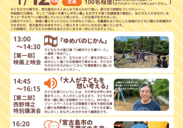 宮古島市制施行20周年記念事業「子どもDOまんなかシンポジウム」があす12日、市役所2階の大ホールで開催される。