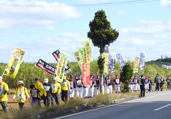 宮古島警察署(新垣健一郎署長)と宮古島地区交通安全協会(下地隆之会長)は「110番の日」にちなんだ10日、平良東仲宗根添・市熱帯植物園の「交通安全地蔵さん」前で交通安全祈願祭およびウオーキングを実施した。