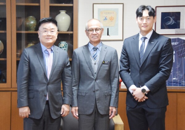 韓国プロ野球の「斗山(トゥサン)ベアーズ」の金秦龍(キム・テリョン)GM(ゼネラルマネージャー)らが9日、市役所に嘉数登市長を表敬訪問した。