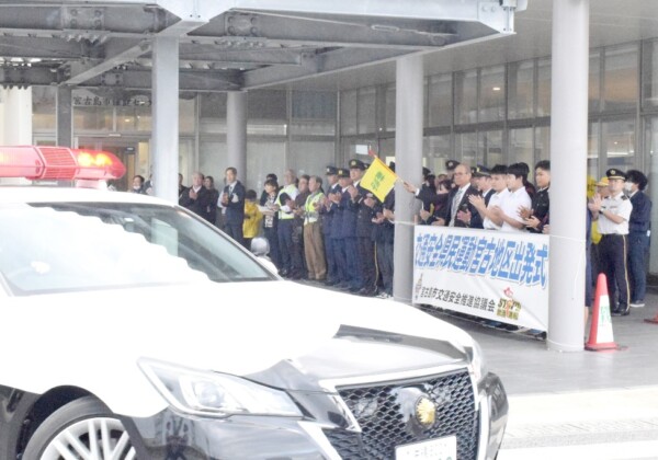あす21日から始まる「令和7年年末年始の交通安全県民運動」に向け、宮古島市交通安全推進協議会(会長・嘉数登市長)は18日、市役所2階大ホールで宮古地区出発式を行った。