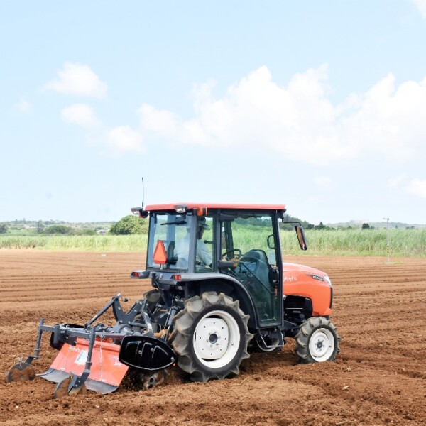 南九州沖縄クボタ宮古営業所(川平英男所長)は17日、城辺下里添のほ場でサトウキビ用トラクタの新機種発表会と実演を行った。