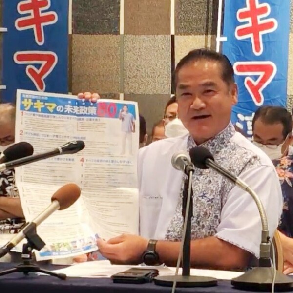 9月11日投開票の沖縄県知事選挙に立候補を表明している前宜野湾市長の佐喜眞淳氏(57)は7日、平良下里の選挙事務所宮古島支部で...