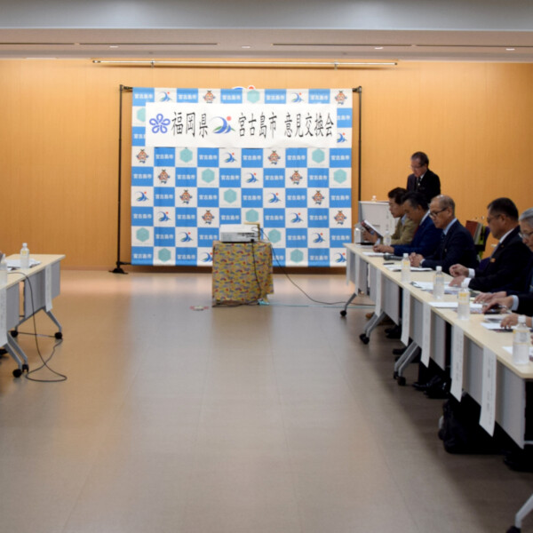 福岡県の服部誠太郎知事は17日、市役所を訪れ、台湾有事などを念頭に置いた住民避難の受け入れを巡り、嘉数登市長らと意見交換を行っ...