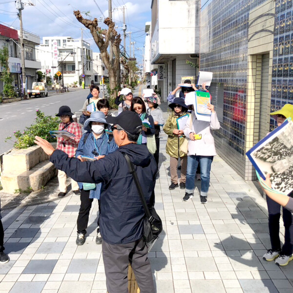 市総合博物館は25日、博物館講座「通りを歩く~平良のまちの移り変わり~入門編」を開催した。市民ら約20人が参加し、かつての行政・経済の中心地であったマクラム通り、下里通り、西里通りを散策。案内人を務めたのは、西里通りで生まれ育ち、60年にわたり街の変遷を見守り続けてきた「西里通りマイスター」こと下地信輔さん