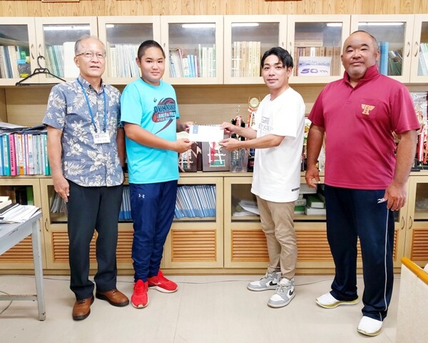 豊見山君(平良中3年)に激励金 砲丸投げで全国体大会出場