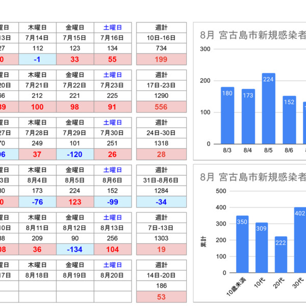沖縄県は14日、宮古島市在住の新型コロナ感染者は186人と発表。入院療養者は15人(中等症9人、軽症6人)。市での直近1週間の...