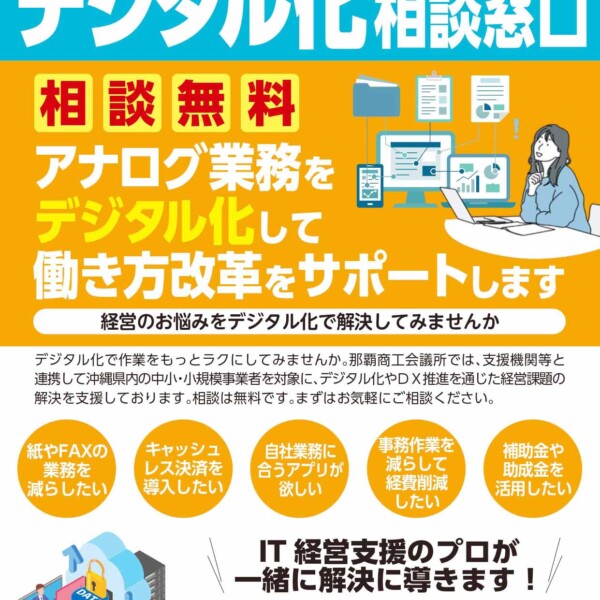 那覇商工会議所では、県内の中小・小規模事業者を対象に、アナログ業務の見直しや業務効率化を目的としたデジタル化支援を展開している。
