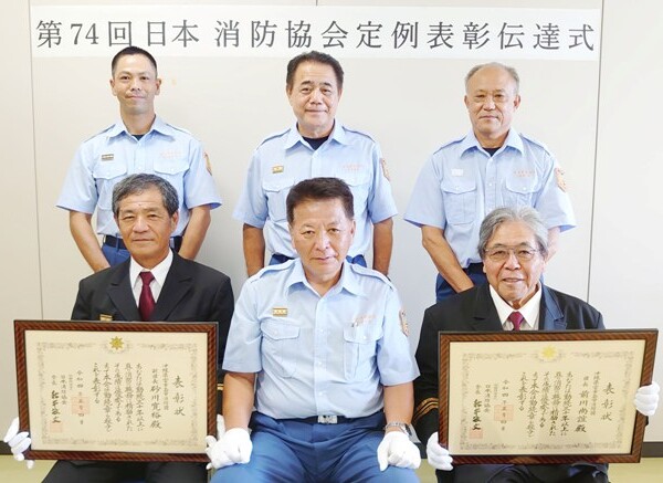 前川・砂川さん表彰 市消防団30年以上勤続で