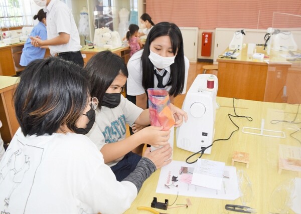 〝宮古織り〟使いスタンド 宮古工業高が製作体験教室
