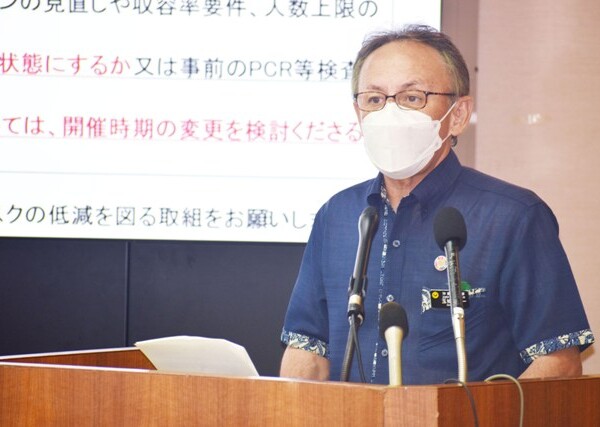 【那覇支局】玉城デニー知事は21日、県新型コロナウイルス感染症対策本部会議終了後、県庁で記者会見し、感染の急拡大を受け、22日...
