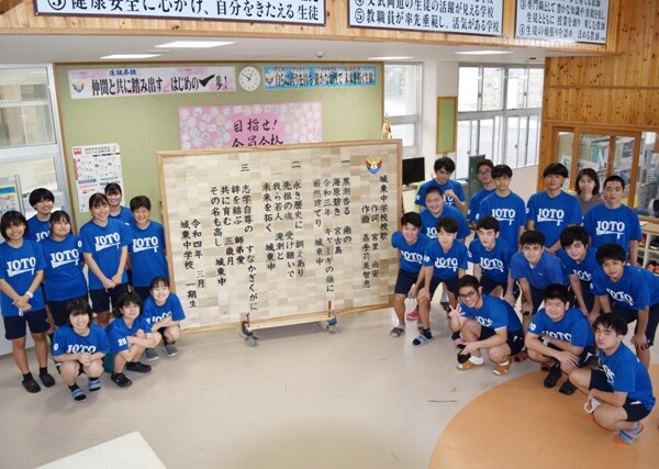 市立城東中学校(比嘉豊樹校長)の1期卒となる3年生らが手作りで製作した校歌レリーフが10日完成し、お披露目会が行われた。13日の...