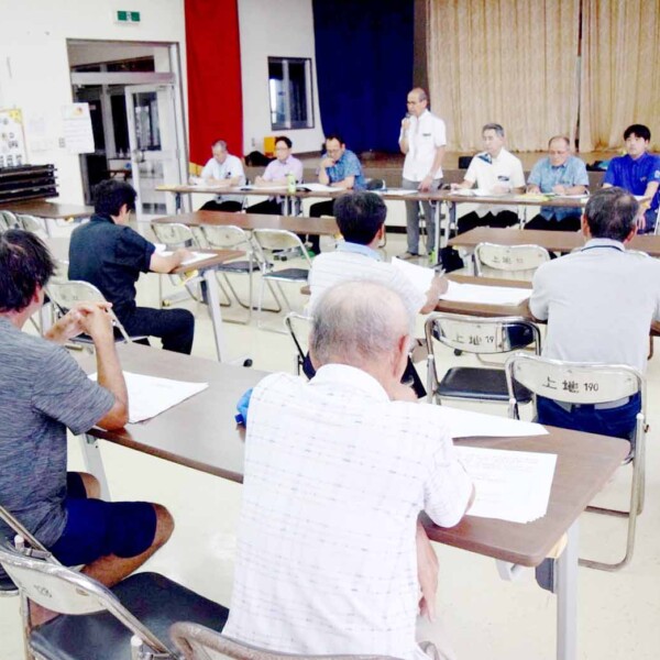 宮古島市は8日、下地上地の竹アラ地区土地改良事業に関する計画変更説明会を上地構造改善センターで開催した。