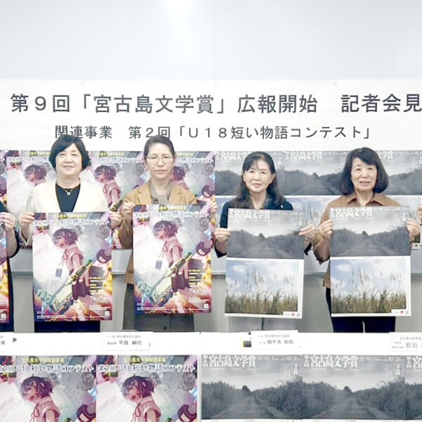 市文化協会(饒平名和枝会長)は5日、市役所で会見を開き、第9回「宮古島文学賞」に島内外から幅広い作品を募集するためのPRを行った。