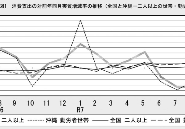 県企画部統計課がまとめた2025年8月の家計調査によると、県内2人以上の世帯のうち、1世帯当たり消費支出は22万7624円で、前年同月比名目14・2%減、実質17・1%減となったことが分かった。