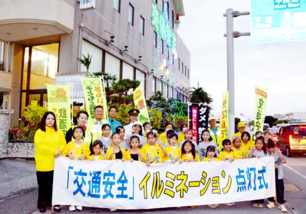 年末年始の交通量増加に合わせ、交通事故防止を呼びかける宮古島警察署と宮古島地区交通安全協会によるやまと商事の「交通安全イルミネーション」が11日から始まった。