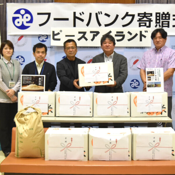 ピースアイランドホテルグループは28日、千葉県多古町産のブランド米「多古米」約210キログラムを、市社会福祉協議会が運営するフードバンク「んまんま」へ寄贈した。今回で5回目の支援。寄贈式は平良老人福祉センターで行われた。